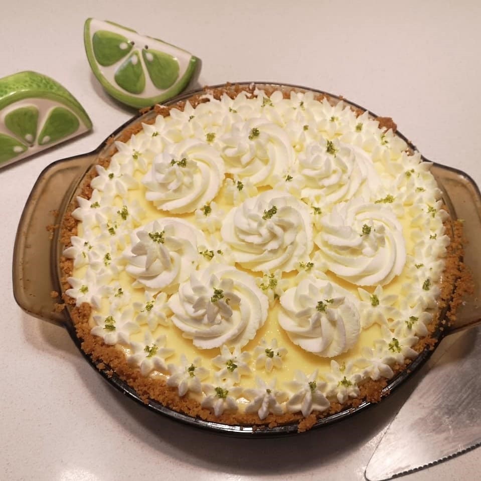 A creamy and light lime filling in a graham cracker crust, topped with Chantilly lime whipped cream and shaved lime. This pie is the perfect blend of sweet and tangy made using fresh squeezed limes.