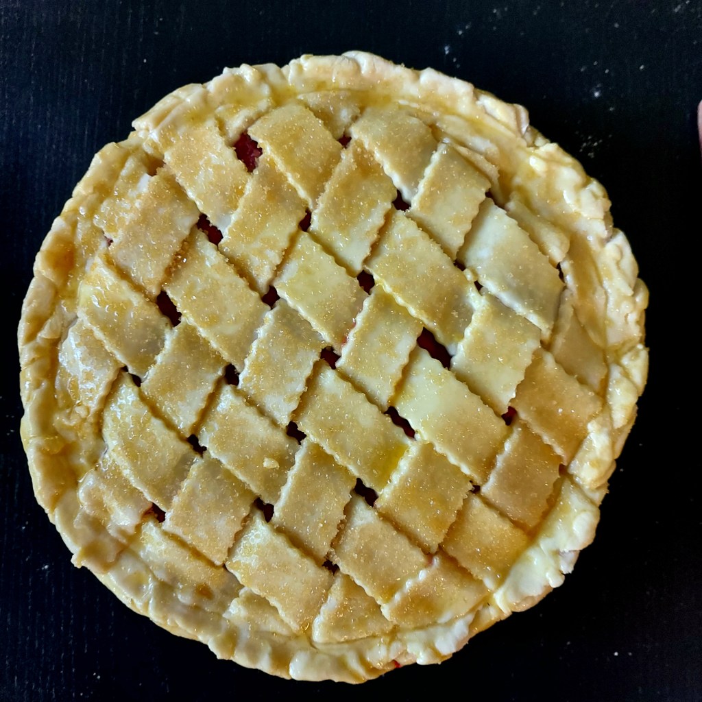 This pie is made with local Norfolk cherries ( choice of sweet or tart) and is sweetened just right. A beautiful lattice crust sprinkled with turbinado sugar. Pure pleasure in every bite.